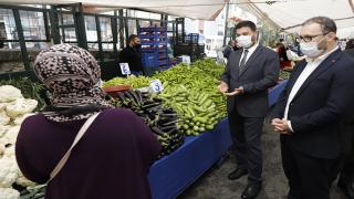 Kağıthane Belediye Başkanı Mevlüt Öztekin, Talatpaşa Cuma Pazarı'nda pandemi ve fiyat denetiminde bulundu.